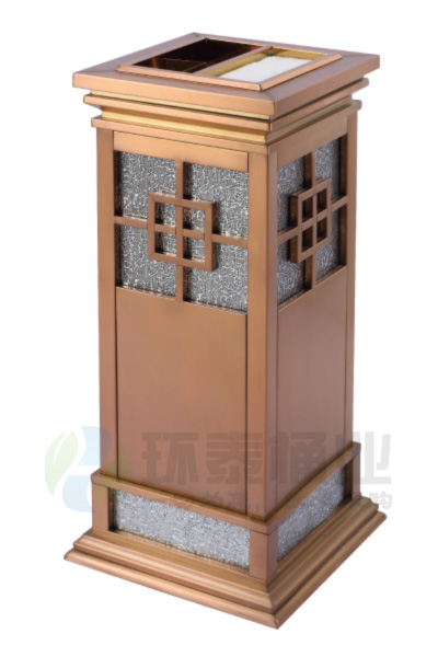 室内垃圾桶HT-SN8079,该产品整体采用优质的镀锌钢板生产加工而成,产品颜色为:玫瑰金,规格为长340mm宽340mm高700mm,本款玫瑰金中式室内垃圾桶采用模具冲压或折边拼焊成型;表面处理有镜面与砂面两种。金属框架选用高品质钢板折边拼焊成型,表面防锈处理后经户外粉末喷涂;木材经烘干、打磨、倒角、防腐处理后表面喷涂进口抗紫外线聚脂漆。生产工艺:不锈钢垃圾桶选用优质不锈钢经下料—折合—压筋—冲孔―成型,氩氟焊、打磨、抛光、打腊。顶盖采用滚压成型技术,HT-SN8079室内垃圾桶也可按照您的具体需求可定制尺寸和颜色,可印制LOGO及文字,详见说明或咨询客服.环泰愿为环保护航,一切为您,放心采购。