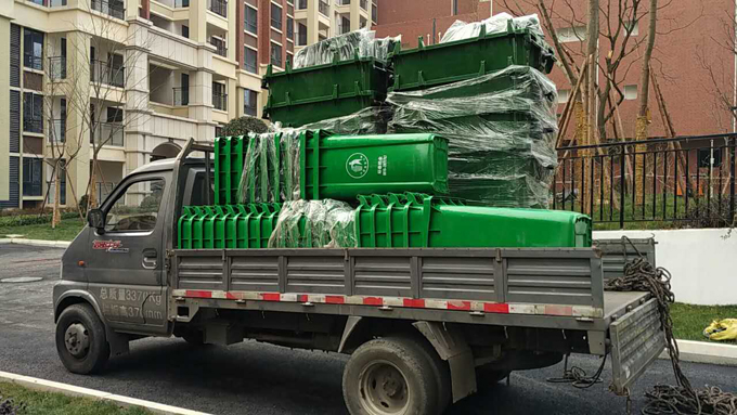 - 环泰桶业为灵兴政府提供人力清运环卫车和户外垃圾桶
