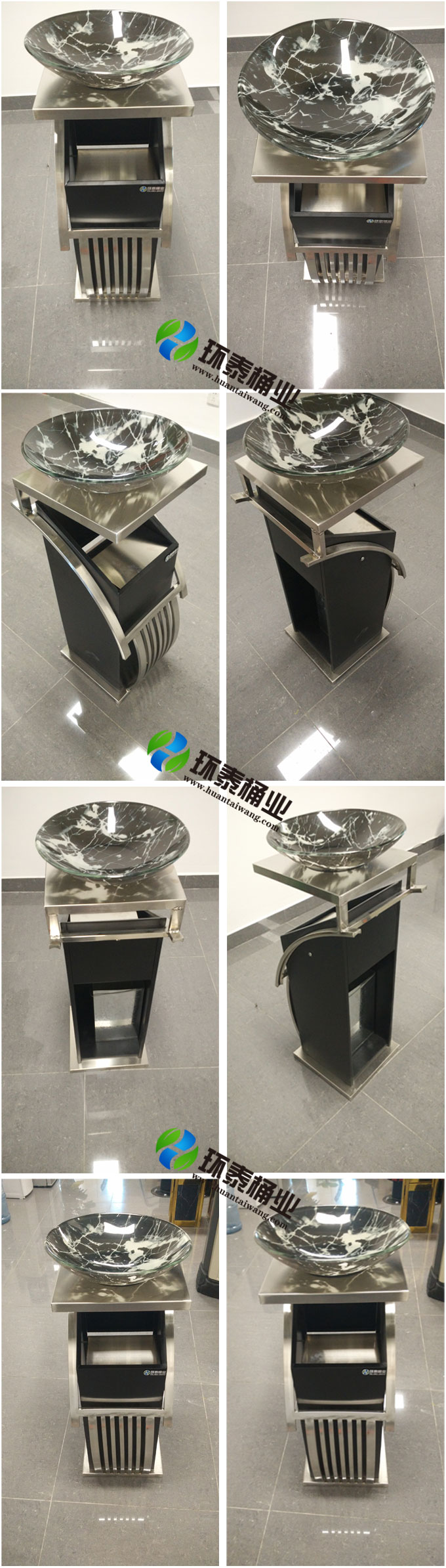 大理石钛金单桶垃圾桶HT-SN036,该产品整体采用优质的镀锌钢板,不锈钢钢板,玻璃钢材质生产加工而成,产品颜色为:黑金色,规格为长320mm宽310mm高740mm,本款玻璃盖新概念座地垃圾桶采用模具冲压或折边拼焊成型;表面处理有镜面与砂面两种。金属框架选用高品质钢板折边拼焊成型,表面防锈处理后经户外粉末喷涂;木材经烘干、打磨、倒角、防腐处理后表面喷涂进口抗紫外线聚脂漆。生产工艺:不锈钢垃圾桶选用优质不锈钢经下料—折合—压筋—冲孔―成型,氩氟焊、打磨、抛光、打腊。顶盖采用滚压成型技术,HT-SN036大理石钛金单桶垃圾桶也可按照您的具体需求可定制尺寸和颜色,可印制LOGO及文字,详见说明或咨询客服.环泰愿为环保护航,一切为您,放心采购。
