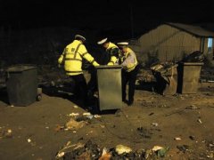 垃圾箱横在路中间 交警徒手清理垃圾获称赞